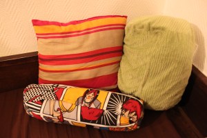 Astuce : j’ai acheté un coussin brut de pomme à 2€ chez Casto que j’utilise depuis un moment déjà pour bourrer « mes bidulles » en tout genre. C’est plus économique et moins encombrant que les énormes sacs de ouate que l’on trouve en mercerie