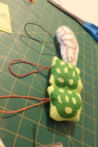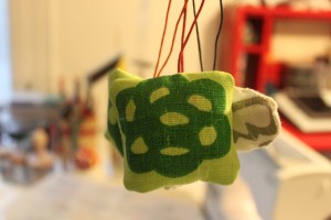 Avec les chutes de tissus des pochettes réalisées hier, j’ai fait ces petits sapins. Dessin à main levée, couture à la machine, un peu de watt, quelques coups de tampons, les finitions à la main, un beau ruban, et voilà le travail.